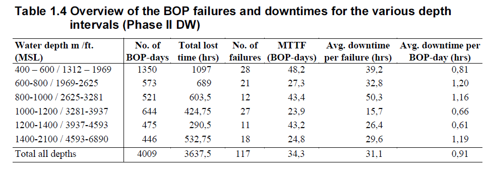 - Historical data indicate that blowouts occur less frequently in deep water, not more frequently (more to follow).