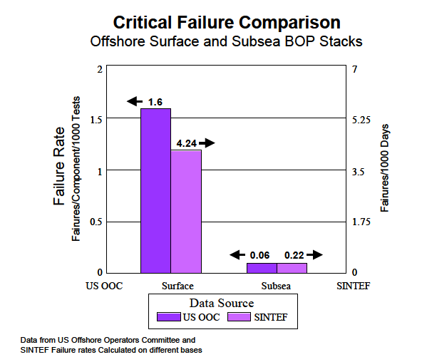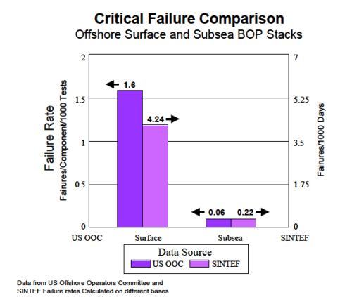 - Subsea BOP stacks have a much better performance record than the surface stacks used in shallow water drilling (more on this later in the week).