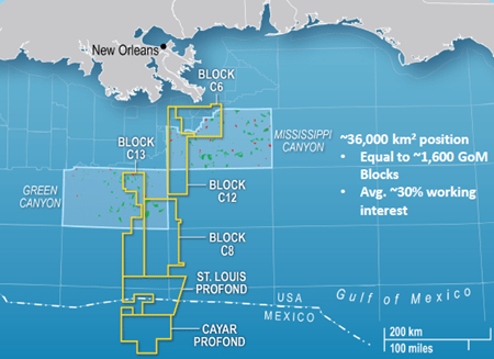 Keep in mind that US lease blocks are the smallest in the offshore world, too small for optimal development in deepwater and frontier areas. The smaller the blocks, the greater the importance of regular lease sales. Pictured below is a 2017 graphic graphic which superimposes Kosmos Energy’s blocks off Senegal and Mauritania on the Central Gulf of Mexico. Note that the six West African blocks encompass 36,000 sq km and are the equivalent of 1600 GoM lease blocks.