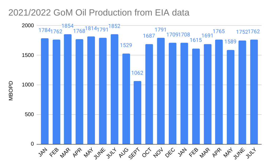 Posted in Gulf of Mexico, Offshore Energy - General, tagged EIA, Gulf of Mexico production, July oil production on September 30, 2022| Leave a Comment »