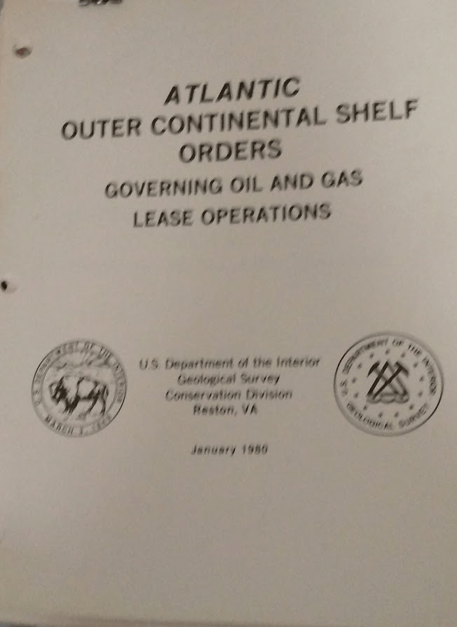 I have an email message indicating that the first OCS Order No. 1 (Identification of Wells, Platforms, and Structures) was signed on 1/31/1957 and the first OCS Order No. 2 (Drilling) dates back to 2/3/1958! (If anyone has access to the actual documents, please let me know.) The orders were developed much further in the 1970s and 1980s.