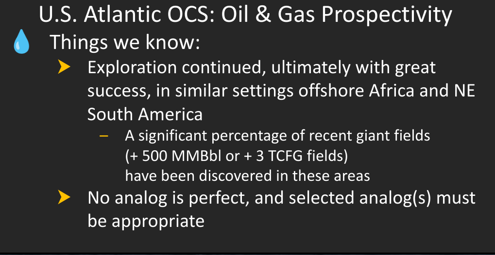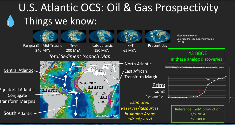 Paul Post believed the untested West African analogs in the US Atlantic were highly prospective, and could contain >20 billion BOE. Paul was not alone in his thinking about Atlantic resource potential. Sadly, Paul is no longer with us 😥, so I’m sharing a few of his slides as a reminder of his important work. I have also attached his 2016 report and am linking the 2021 update.