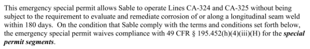 Three excerpts from the first attachment are pasted below. The last paragraph on p. 2 succinctly explains PHMSA’a emergency permit:
