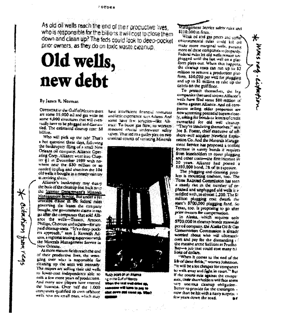 For 40 years, challenges associated with bankruptcies (or the threat thereof), a divided offshore industry, political pressure, hurricane damage, and unresolved legal issues have hindered initiatives to better protect the public from decommissioning liabilities. Nonetheless, regulators and industry were able to prevent taxpayers from incurring any decommissioning costs. Unfortunately that is no longer the case.