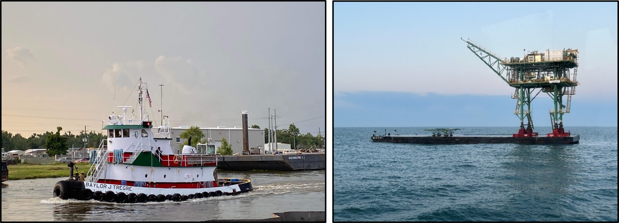 In May 2024, the Baylor J. Tregre tugboat was towing a platform on the barge MARMAC 27 to Brazos Block 538 in the Gulf of America.