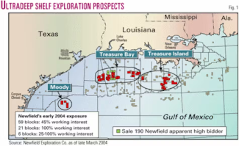 Demand and high well producibility are stimulating exploration in the high pressure, high temperature Western Haynesville (Texas) and other ultradeep onshore gas prospects. Is it time to revisit ultradeep gas on the Gulf of America shelf? See the above targets map from 2004.
