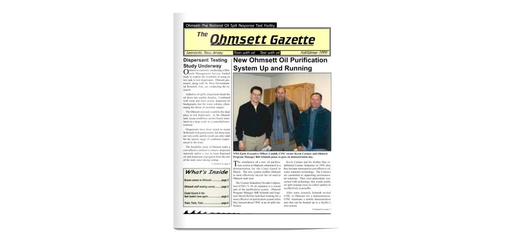 My involvement with Ohmsett dates back to the 1970s when EPA operated the facility and I was on the Ohmsett Interagency Technical Committee. The facility fell into disrepair in the late 1980s. Thanks largely to the vision and initiative of my Minerals Management Service (MMS) colleague Ed Tennyson and the enactment of the Oil Pollution Act of 1990, the MMS began restoring the facility in 1990 and resumed testing activities in 1992. Senator Frank Lautenberg (NJ) and a host of dignitaries participated in the grand reopening event.