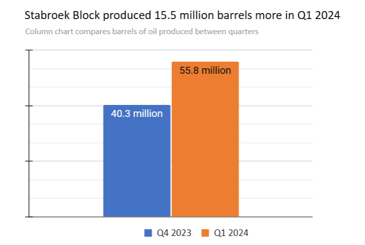 In Q4 of 2023, Hess produced 194,000 boepd in the Bakken formation vs. a Stabroek share of 128,000 bopd.