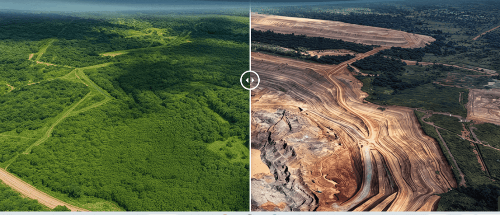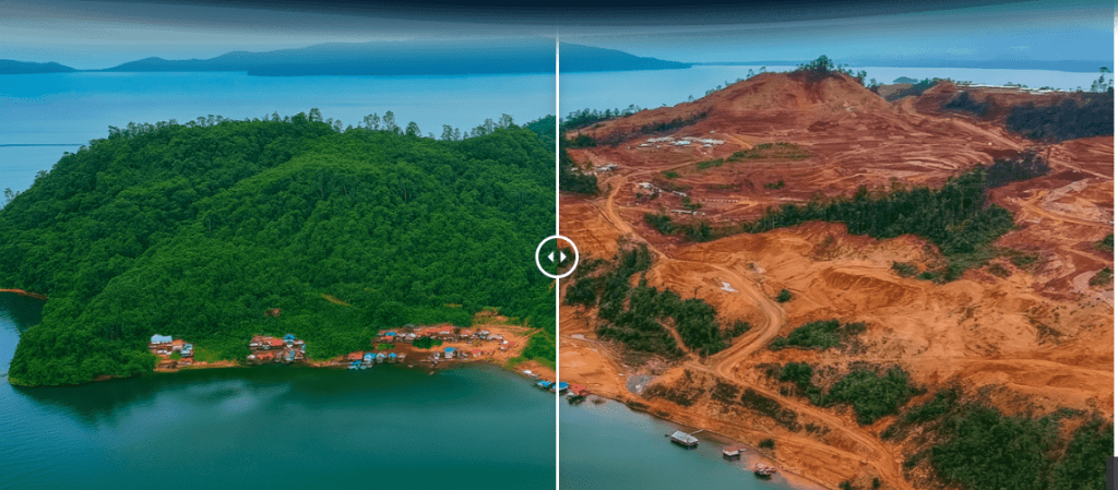 Terrestrial Indonesian nickel mine site before and after miningBefore and after: terrestrial Chilean copper mine siteDeep-sea nodule field before and after collection by Impossible Metals
