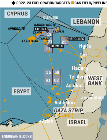 The field, which was discovered in 1999 by British Gas (now part of Shell), is located approximately 30-36 km off the coast of Gaza in the eastern Mediterranean and has estimated natural gas reserves of ~ 1 Tcf.