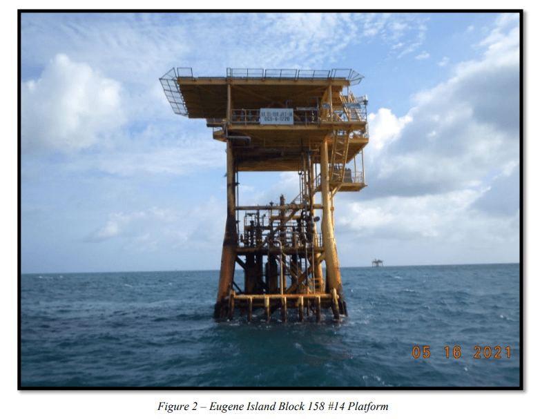 Postscript: According to BOEM data, the lease where the fatal incident occurred expired on 7/31/2021. Per the BSEE Borehole and structures files, neither the platform (#14) nor any of the other 4 structures remaining on the lease have been removed, and the well (#27) has yet to be plugged.