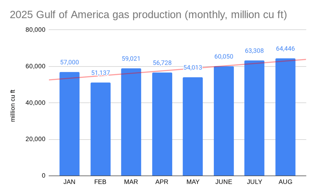 Gas production, which is now overwhelmingly from oil wells, also ticked up. However, gas production remains at historically low levels. (See charts below.)