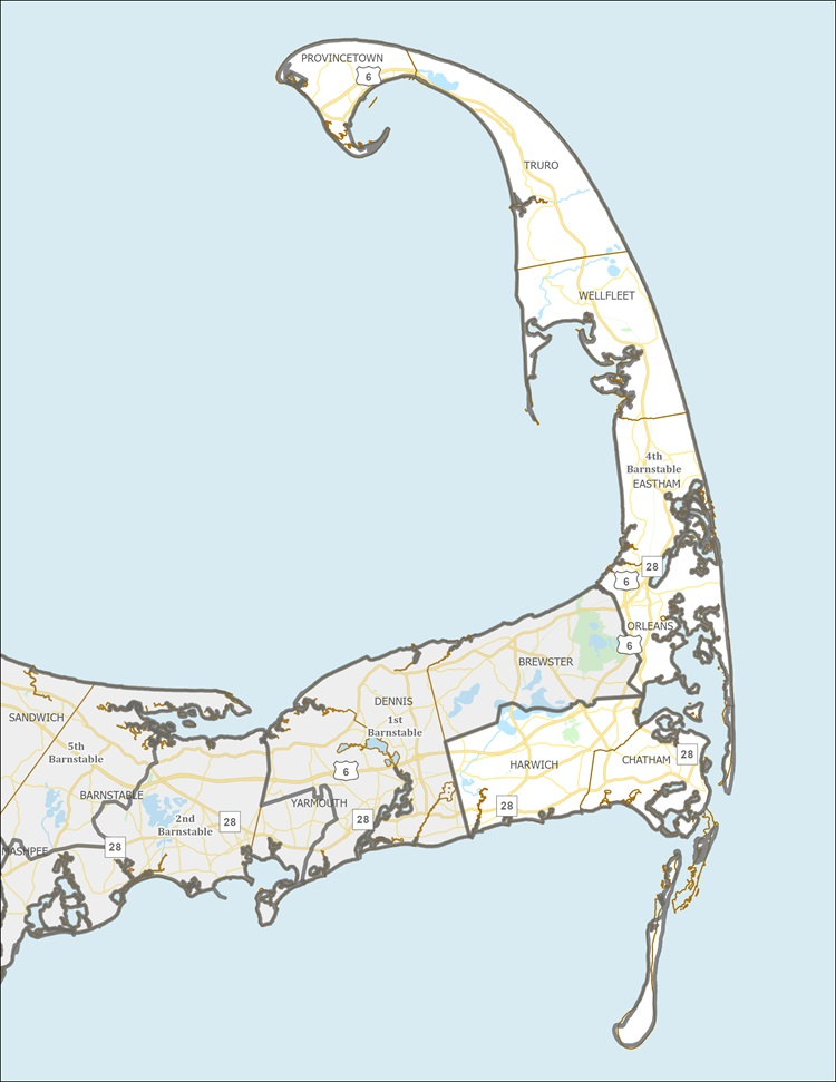 This nonbinding initiative, which was reportedly the work of an individual wind advocate, was a surprise addition to the ballot for residents of the 4th Barnstable District of the Massachusetts House. That district includes the Outer Cape towns of Chatham, Eastham, Harwich, Orleans, Provincetown, Truro, and Wellfleet (see map above).