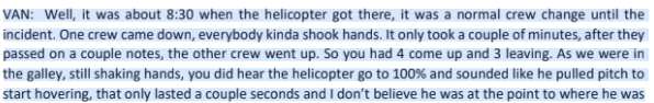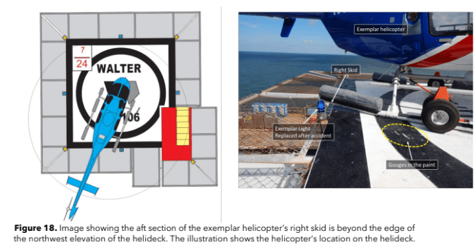 This is interesting wording given that the perimeter light was identified as the pivot point, one of the 3 requirements for a dynamic rollover. Why wasn’t that violation observed by the operator/contractor and corrected? What helideck inspection procedures were in place? Did NTSB consider the fragmented regulatory regime for helicopter safety, particularly with regard to helidecks?