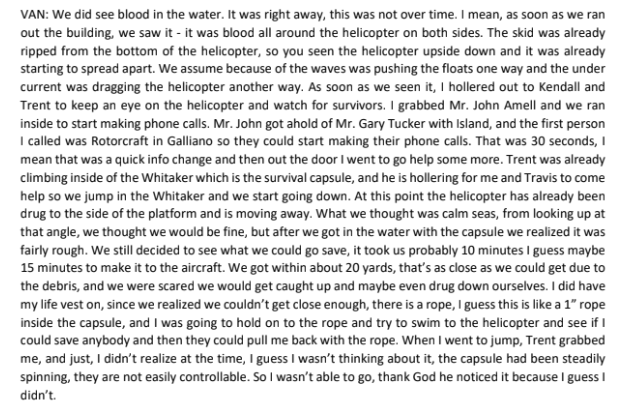 The NTSB has finally issued their report (attached) on the 12/29/2022 helicopter crash that resulted in 4 fatalities at Walter’s West Delta 106 A platform. The NTSB report on the Huntington Beach pipeline spill took a comparable amount of time (26 months) to complete. By comparison, the lengthy and complex National Commission, BOEMRE, Chief Counsel, and NAE reports on the Macondo blowout were published 6 to to 17 months after the well was shut-in.
