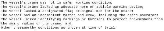 The victim’s family have filed a wrongful death lawsuit against Helix Energy Services and Triton Diving Services. The plaintiffs assert that prior to the crane movement the crane operator and crew had not undertaken measures to assure that the crane’s swing area was clear of other crew members. Per their filing, Triton and Helix were negligent as follows:
