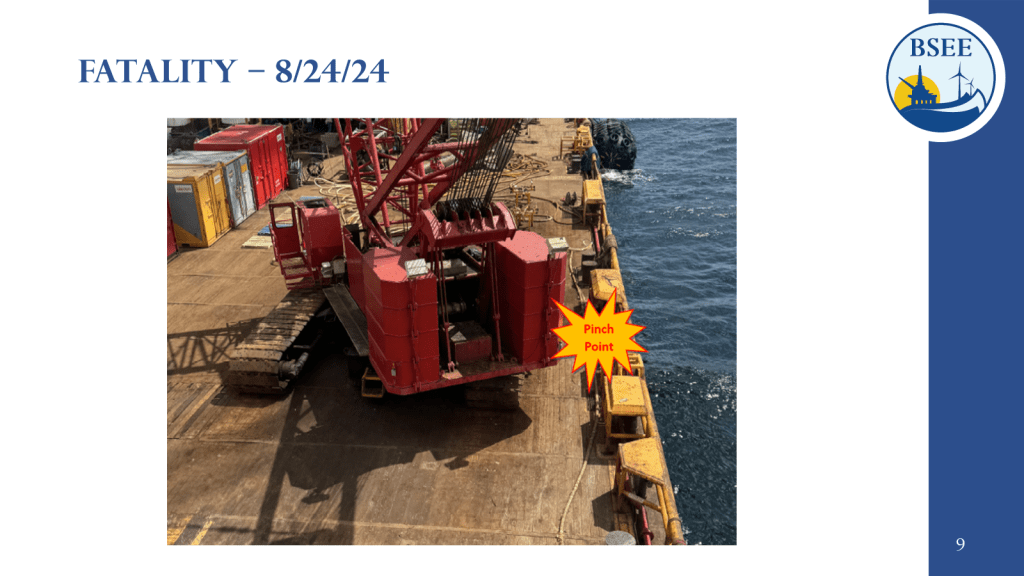 After a zero fatality year in 2023, the first in at least 60 years, Jason Mathews of BSEE advises that one worker was killed during US OCS oil and gas operations in 2024.