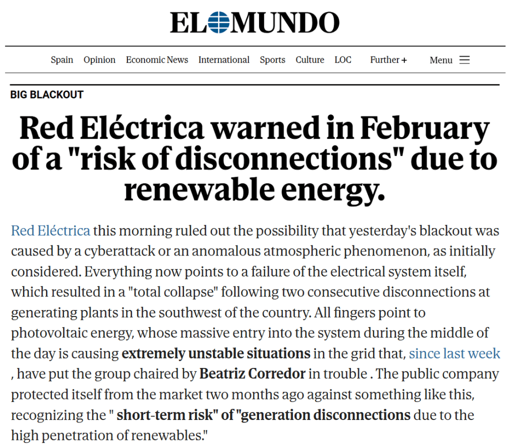 Note that no extreme weather events were reported in Spain on April 28, 2025. The Portuguese grid operator mentioned “extreme temperature variations” in Spain’s interior, possibly causing grid oscillations, but no storms or heatwaves were noted. Weather was typical for April, with mild temperatures (8-19°C) and some rain.