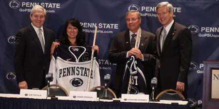 Kim and Terry Pegula flanked by PSU President Graham Spanier and Athletic Director Tim Curley