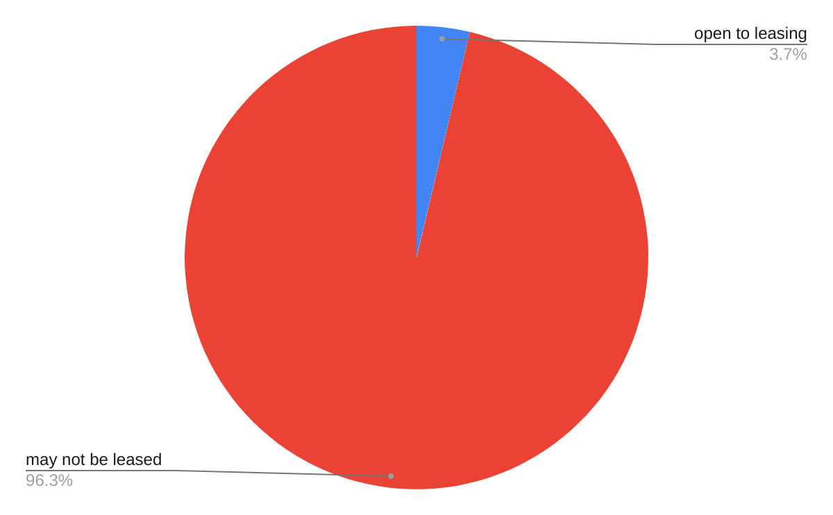 The number of active leases, currently 2153, has been at a historically low level for the past 2 years. Only 0.7% of our OCS is leased and thus open to exploration. 26% (552) of these leases are already producing, leaving a historically low number of nonproducing leases.