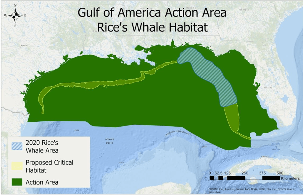 p.3: “Despite no evidence that an Oil and Gas Program vessel has ever struck a Rice’s whale, the 2025 BiOp projects that Oil and Gas Program vessels will lethally strike numerous Rice’s whales over the term of the 2025 BiOp. On that basis alone, the Service found that the Oil and Gas Program will jeopardize the continued existence of the Rice’s whale, and developed a multi-step reasonable and prudent alternative which it asserts will reduce projected vessel strikes to zero.“