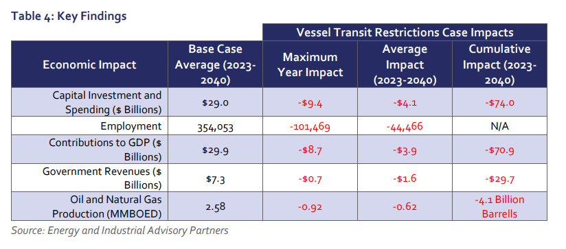 EIAP’s key findings on the estimated economic impacts from these restrictions are summarized in the table below. Those are very significant costs given the uncertainty of the whale habitat in the central and western GoM.