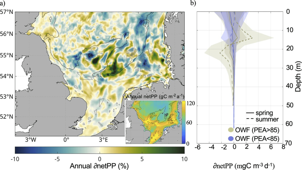 In their latest publication, (scientists at the Helmholtz-Zentrum Hereon) now show that large-scale wind farms can strongly influence marine primary production as well as the oxygen levels in and beyond the wind farm areas. Their results were published in the journal Communications Earth & Environment.
