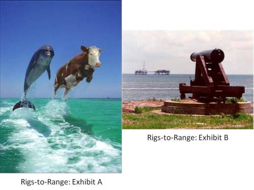 Rigs-to-Range: Offshore platforms have been proposed as sites for (1) raising exotic cattle, (2) target practice. Neither of these uses is endorsed by BOE!